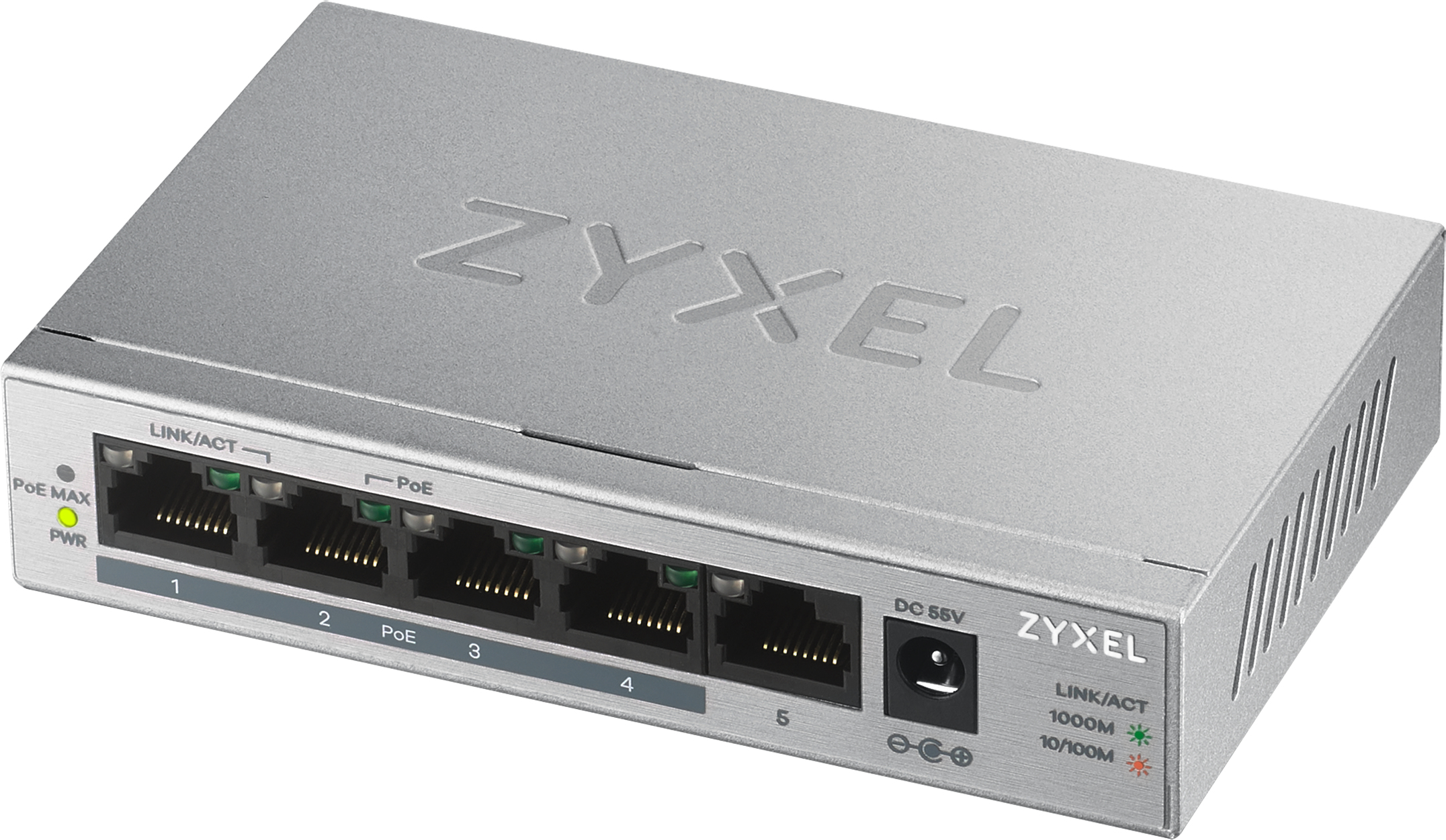Zyxel GS1005HP. Tipo interruttore: Non gestito. Tipo di porte RJ-45: Gigabit Ethernet (10/100/1000), Quantità di porte RJ-45: 5. Full duplex. Dimensioni tavola MAC: 2048 voci, Capacità di commutazione: 10 Gbit/s. Standard di rete: IEEE 802.3, IEEE 802.3ab, IEEE 802.3az, IEEE 802.3u, IEEE 802.3x. Supporto Power over Ethernet (PoE)
