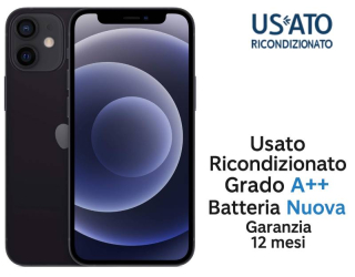 IPHONE 12 MINI 64GB RICOND. BLACK GRADO A++ GARANZIA 1Y BATT.NUOVA