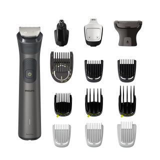 Un unico strumento, precisione innovativa Per viso, capelli e corpo Crea il tuo look personale con questo rifinitore versatile, che include 14 accessori di qualità per lo styling di viso, testa e corpo. Il pettine di precisione consente di ottenere una rifinitura uniforme alla lunghezza desiderata.