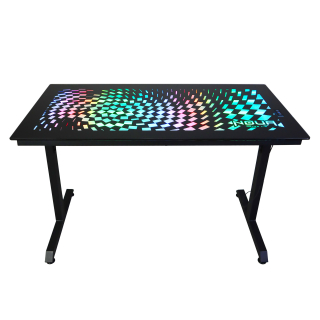 La scrivania da gioco illuminata Noua Duk RGB è fissata su un robusto telaio in ferro con supporti trasversali per fornire una piattaforma robusta e affidabile per qualsiasi attività. Può supportare fino a 60 kg. L'illuminazione RGB fornisce un bagliore unico e colorato alla tua configurazione di gioco, con effetti a colori singoli e multicolori che possono essere cambiati tramite il controller integrato sul piano scrivania. Porta USB per alimentazione. Tavolo con piano in vetro temperato rinforzato con finitura riflettente in vetro nero liscio, manutenzione e pulizia facili.
