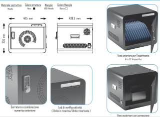 - Unità da tavolo (impilabile) di ricarica/conservazione per 12 tablet