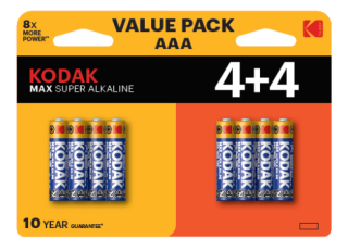 BATTERIA AAA 1,5V LR3 KODAK MAX ALCALINE 8PZ
