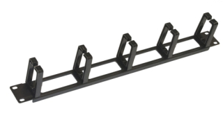 Pannello con anelli passacavi per installazione orizzontale. In plastica, con 5 anelli. Il pannello è forato, per permettere il passaggio dei cavi e migliorare l'aerazione. Per l'organizzazione e la gestione dei cavi dentro gli armadi rack.