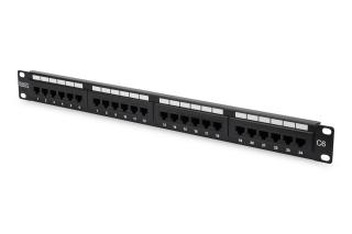 Il pannello patch CAT 6 non schermato di DIGITUS® è disponibile nelle versioni 16 porte o 24 porte (1 unità) o 48 porte (2 unità). Esso è stato creato ai sensi della norma Link Performance classe E, per un massimo di 250 MHz, ISO/IEC 11801 e EN 50173 e certificato UL. L'alloggiamento è stato creato in acciaio zincato laminato a freddo con uno spessore di 1,5 mm ed è quindi perfetto per installazione in armadi da 19".
