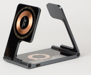 È un stand di ricarica wireless con aggancio magnetico. È un metodo di ricarica veloce ed innovativo, ricarica il tuo smartphone, smartwatch IOS ed auricolari con covere che supporta la ricarica wireless. Compatibile con la funzione Standby di IOS 17 .